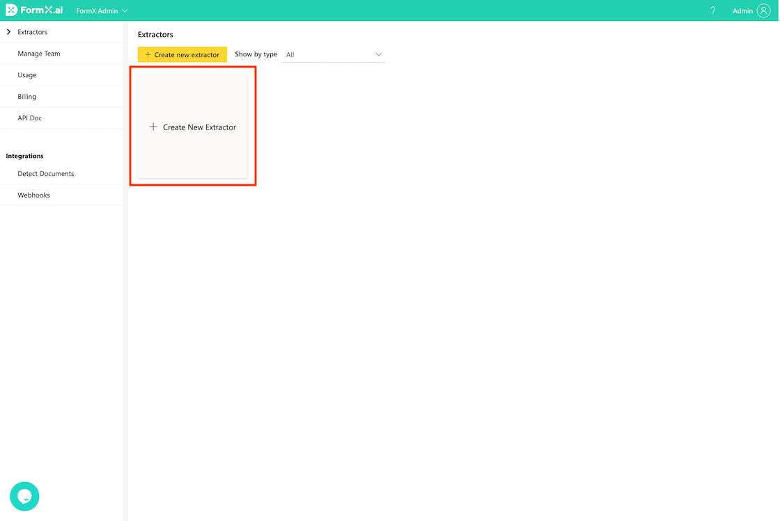 After creating an account, you can then create different types of extractors based on your needs. FormX provides a set of pre-built extractors and also allows you to train your own extractor by providing sample images and marking the areas where the desired information is located.